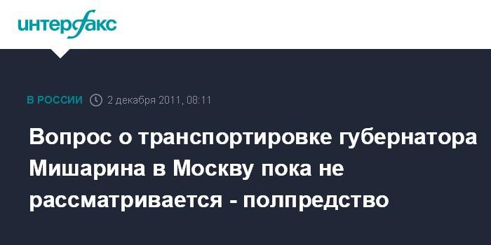 Вопрос о транспортировке губернатора Мишарина в Москву пока не рассматривается - полпредство