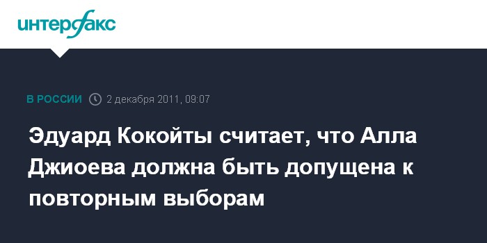 "Я считаю, что Алла Джиоева должна иметь возможность выставить свою кандидатуру на выборах главы республики в марте будущего года. Это мое личное мнение, а окончательное слово должен сказать Верховный суд Южной Осетии", - заявил "Интерфаксу" в пятницу Эдуард Кокойты.