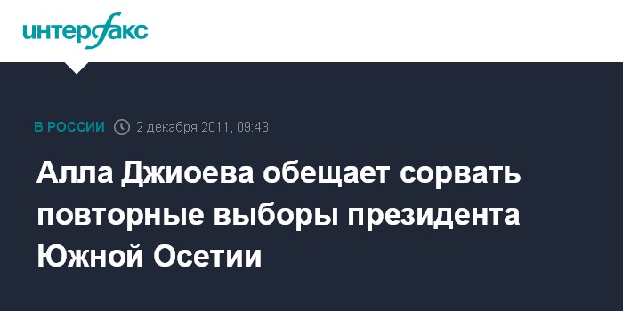 Цхинвали. 2 декабря. INTERFAX.RU - Кандидат в президенты Южной Осетии Алла Джиоева намерена вывести своих сторонников на улицы Цхинвали в день повторных выборов 25 марта, если не будет признана ее победа.