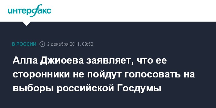 Цхинвал. 2 декабря. INTERFAX.RU - Кандидат в президенты Южной Осетии от оппозиции Алла Джиоева заявляет, что более 13 тыс. ее сторонников, являющихся одновременно и гражданами России, больше не намерены участвовать в каких-либо выборах.