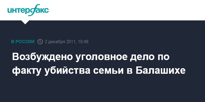 Москва. 2 декабря. INTERFAX.RU - Подмосковные органы СК РФ возбудили уголовное дело по факту убийства двоих детей и их отца в Балашихе, сообщили в СК РФ.