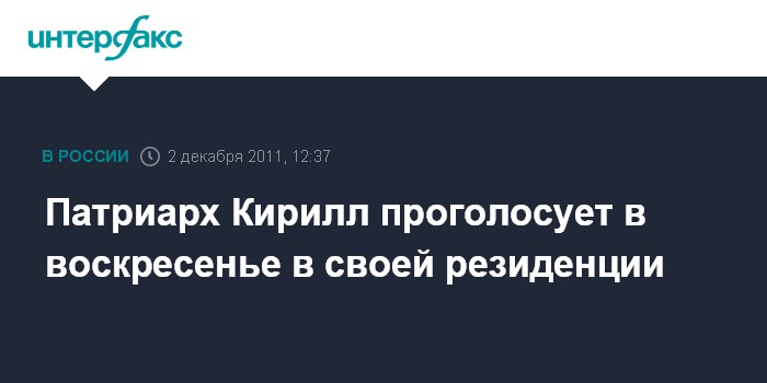 Москва. 4 декабря. INTERFAX.RU - Патриарх Московский и всея Руси Кирилл в воскресенье утром примет участие в парламентских выборах в своей резиденции в Чистом переулке в Москве.