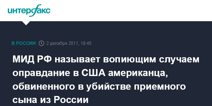 МИД РФ называет вопиющим случаем оправдание в США американца, обвиненного в убийстве приемного сына из России