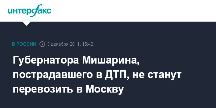Губернатора Мишарина, пострадавшего в ДТП, не станут перевозить в Москву
