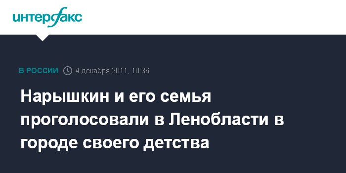 С.Нарышкин проголосовал вместе со своей семьей - женой и детьми в одном избирательном участке в городе Всеволожск Ленинградской области. Семейство Нарышкиных голосовало по открепительным удостоверениям.