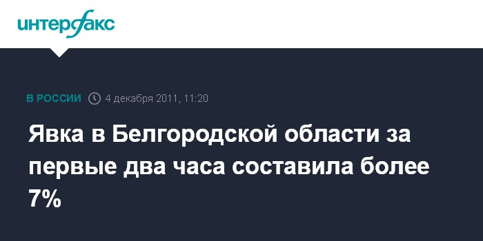 Белгород. 4 декабря. INTERFAX.RU - В Белгородской области по состоянию на 10:00 мск проголосовали 7,56% (93 тыс. 61 человек), сообщили "Интерфаксу в облизбиркоме.