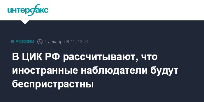 Москва. 4 декабря. INTERFAX.RU - В Центризбиркоме РФ надеются на беспристрастность представителей иностранных государств, наблюдающих за выборами депутатов Госдумы в России 4 декабря.