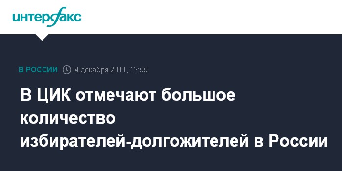Москва. 4 декабря. INTERFAX.RU - Порядка 4,5 тыс. российских избирателей старше 100-летнего возраста, сообщила член ЦИК РФ Нина Кулясова. "У нас очень много пожилых избирателей", - сказала она в ЦИК РФ в воскресенье.