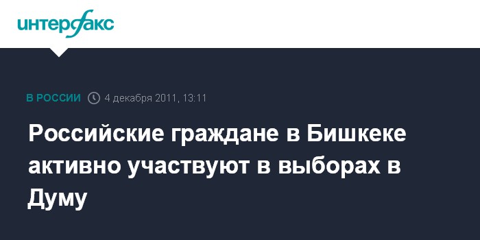 Присутствующие на участке в Бишкеке наблюдатели - представители парламента Киргизии заявили "Интерфаксу", что "выборы депутатов Госдумы РФ проходят спокойно, нарушений не зафиксировано, и, несмотря на пасмурную морозную погоду, избиратели демонстрируют высокую активность".