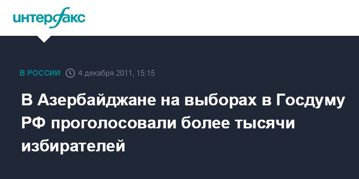 Баку. 4 декабря. INTERFAX.RU - Свыше тысячи граждан России проголосовали в воскресенье на выборах в Государственную Думу на двух избирательных участках, открытых в Азербайджане, сообщил агентству "Интерфакс-Азербайджан" председатель участковой избирательной комиссии, открытого при посольстве РФ в Баку, Олег Крохин.