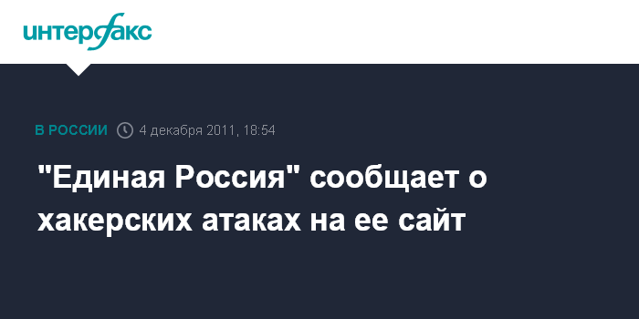 Москва. 4 декабря. INTERFAX.RU - Сайт "Единой России" в течение дня подвергается DDoS - атакам, сообщает пресс-служба партии. "Сайт периодически атакуют хакеры, но нашим специалистам по IT довольно быстро удается устранять проблемы", - сказал "Интерфаксу" представитель пресс-службы партии. Кто может организовывать атаки на сайт, в партии не сообщили.