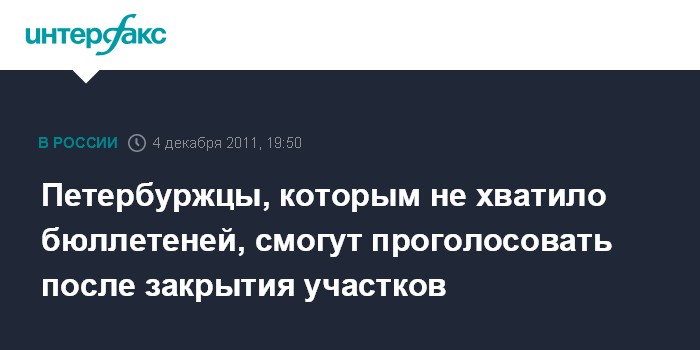 Санкт-Петербург. 4 декабря. INTERFAX.RU - Избиратели в Петербурге, которым не хватит бюллетеней на участках, смогут проголосовать даже после их закрытия в 20.00 мск, сообщил "Интерфаксу" заместитель председателя Горизбиркома северной столицы Дмитрий Краснянский.