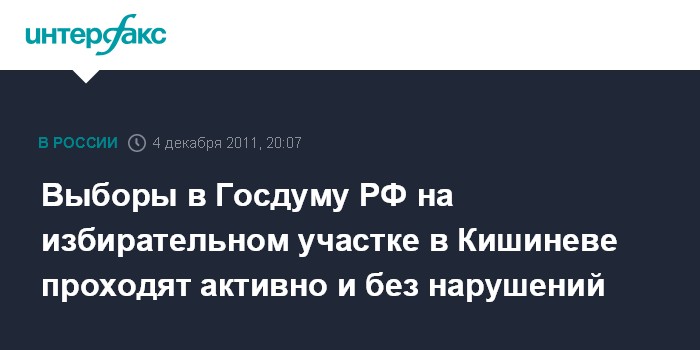 Кишинев. 4 декабря. INTERFAX.RU. - Выборы в Госдуму РФ на избирательном участке в Кишиневе проходят активно, - об этом сообщил корреспонденту "Интерфакса" пресс-секретарь посольства РФ в Молдавии Михаил Мальков.