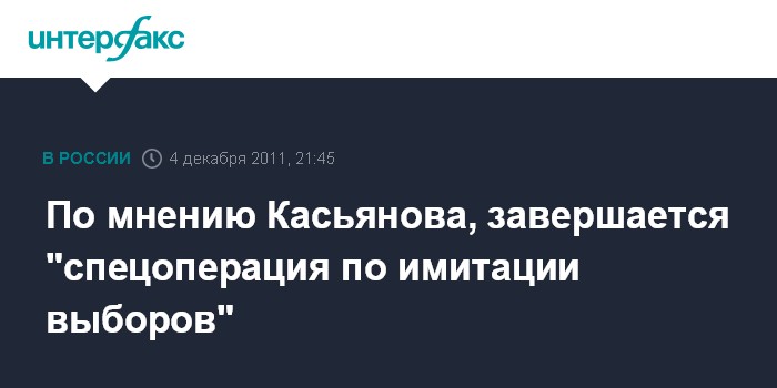 Москва. 4 декабря. INTERFAX.RU - Сопредседатель незарегистрированной Партии свободы и справедливости (ПАРНАС) Михаил Касьянов назвал выборы в Госдуму имитацией.