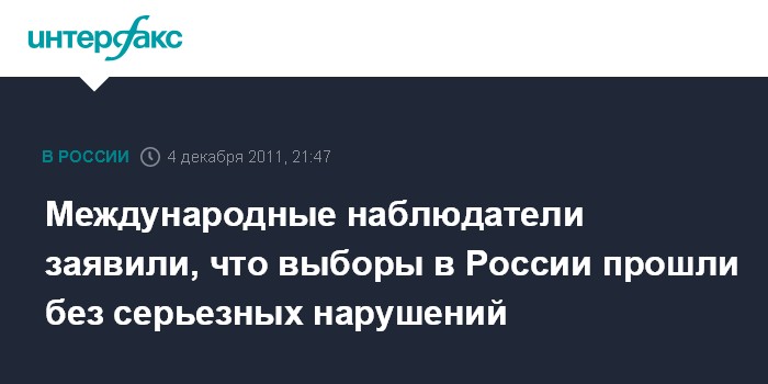 "Наблюдатели высоко оценили уровень подготовки и профессиональность проведения выборов. Все замечания касаются не столько нарушений избирательного законодательства, сколько технических недостатков", - заявил наблюдатель из Польши Матеуш Пискорски на пресс-конференции в международном информационном центре "Выборы-2011".