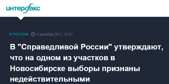 Москва. 4 декабря. INTERFAX.RU - На одном из участков в Новосибирске избирательная комиссия признала выборы недействительными, сообщает депутат-справедливоросс Илья Пономарев.