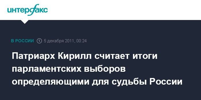 Москва. 5 декабря. INTERFAX.RU - Патриарх Московский и всея Руси Кирилл считает день парламентских выборов началом долгого пути, который, в конце концов, определит судьбу России.