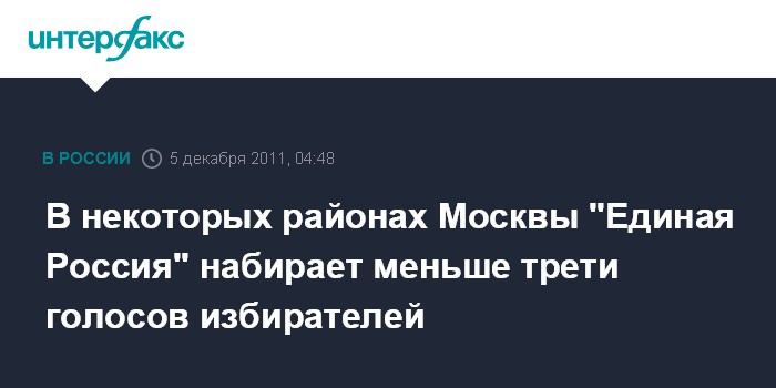 Москва. 5 декабря. INTERFAX.RU - В Москве на выборах в Госдуму РФ, по предварительным подсчетам, "Единая Россия" набирает наименьшее число голосов в Тушинской региональной группе, где на значительной части избирательных участков использовались электронные сканирующие урны - комплексы обработки избирательных бюллетеней (КОИБ).