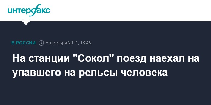На станции "Сокол" поезд наехал на упавшего на рельсы человека