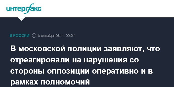 Однако, отметил он, "силы московской полиции отреагировали на нарушения оперативно и в полном соответствии с рамками своих полномочий, определенных законодательством, приняли меры, которые позволили избежать негативного развития ситуации и осложнения обстановки".