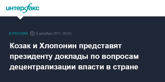 Козак и Хлопонин представят президенту доклады по вопросам децентрализации власти в стране