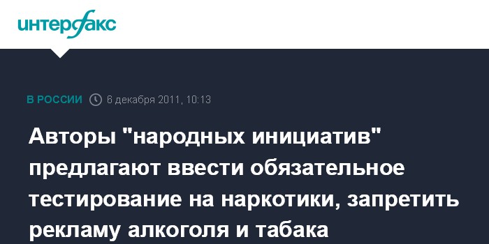 Авторы "народных инициатив" предлагают ввести обязательное тестирование на наркотики, запретить рекламу алкоголя и табака