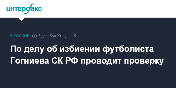 Москва. 6 декабря. INTERFAX.RU - По факту обращения руководства Общероссийского профессионального союза футболистов об избиении игрока клуба "Краснодар" Спартака Гогниева в Чечне начата доследственная проверка, сообщил "Интерфаксу" официальный представитель СК РФ Владимир Маркин.