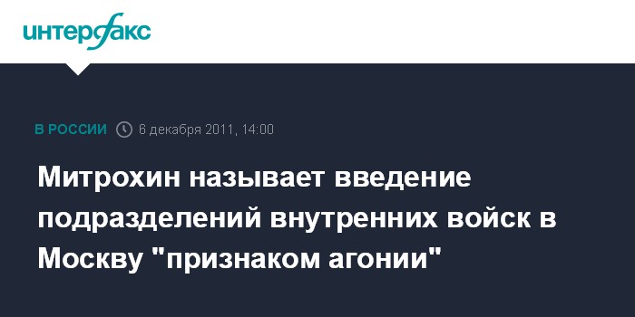 Митрохин называет введение подразделений внутренних войск в Москву "признаком агонии"