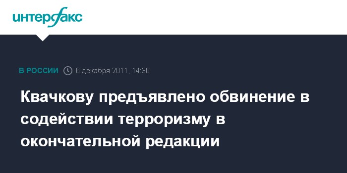 Квачкову предъявлено обвинение в содействии терроризму в окончательной редакции