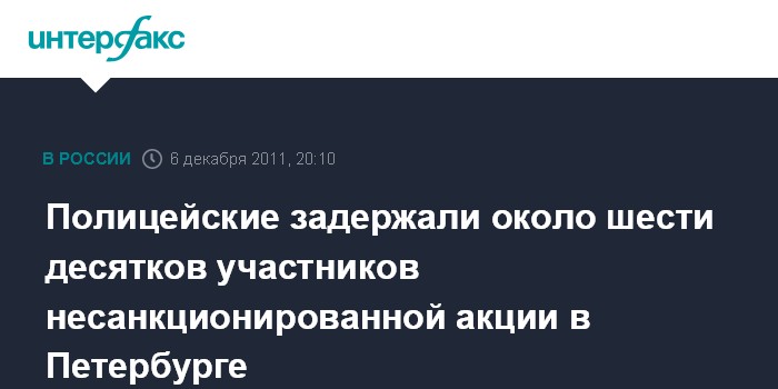 Санкт-Петербург. 6 декабря. INTERFAX.RU - В ходе несанкционированной акции оппозиции у Гостиного двора в Петербурге во вторник вечером были задержаны около 60 человек, сообщил "Интерфаксу" официальный представитель Главного управления МВД по северной столице и Ленинградской области.