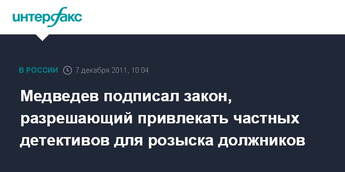Медведев подписал закон, разрешающий привлекать частных детективов для розыска должников