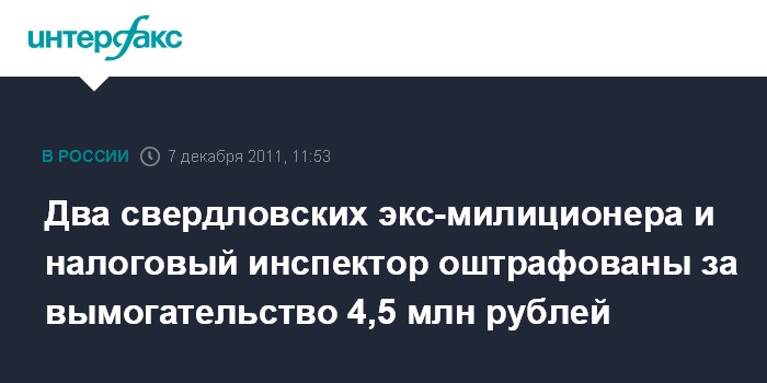 Два свердловских экс-милиционера и налоговый инспектор оштрафованы за вымогательство 4,5 млн рублей