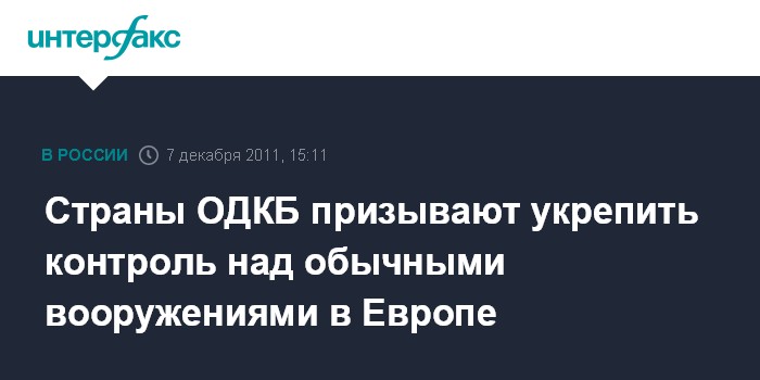 Москва. 7 декабря. INTERFAX.RU - Страны-участницы ОДКБ выступают за усиление контроля над обычными вооружениями в Европе и активизацию сотрудничества в вопросах нераспространения оружия массового оружия.