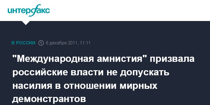 Лондон. 9 декабря. INTERFAX.RU - Российские власти должны остановить жестокое обращение полиции с мирными демонстрантами, журналистами, а также заключенными, сообщает в четверг правозащитная организация "Международная амнистия".