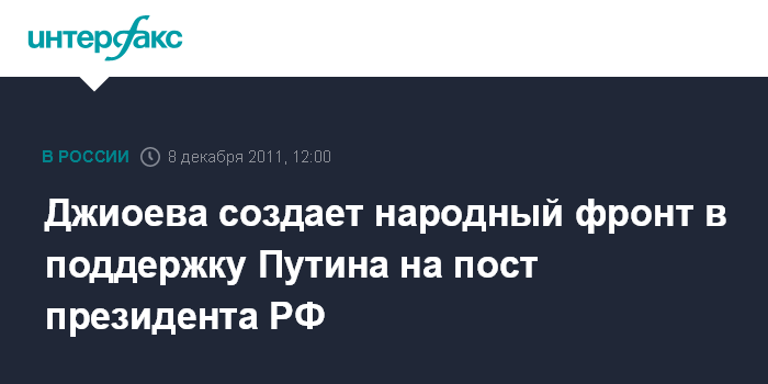 Джиоева создает народный фронт в поддержку Путина на пост президента РФ