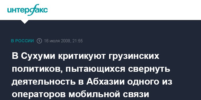 Тбилиси. 16 июля. ИНТЕРФАКС - В Сухуми обеспокоены попытками грузинских властей лишить Абхазию мобильной связи.