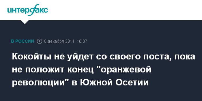 "Эти сообщения - абсурд и дезинформация. Я никуда не уходил и не уйду до выборов президента Южной Осетии, которые должны состояться 25 марта будущего года", - заявил Кокойты "Интерфаксу" в четверг.