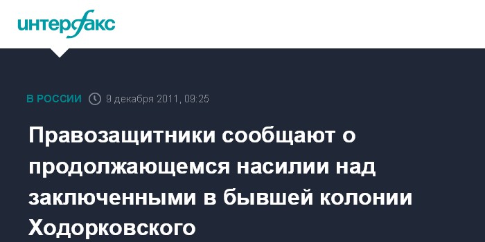 Чита. 9 декабря. INTERFAX.RU - В Забайкальский правозащитный центр по неофициальным каналам из колонии ИК-10 в Краснокаменске второй день поступают сведения о новых фактах насилия над осужденными, сообщает пресс-служба Забайкальского правозащитного центра.