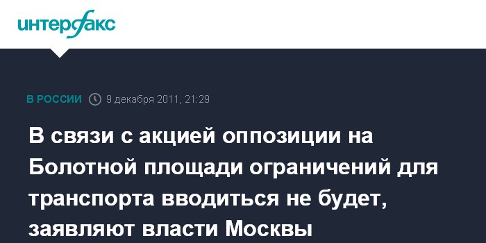 Москва. 9 декабря. INTERFAX.RU - Правительство Москвы не планирует вводить каких-либо ограничений в работе общественного или личного транспорта в связи с запланированным на 10 декабря митингом оппозиции на Болотной площади в центре столицы.