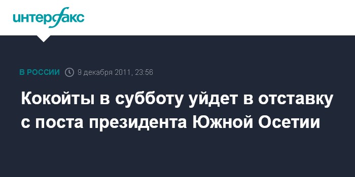 Кокойты в субботу уйдет в отставку с поста президента Южной Осетии