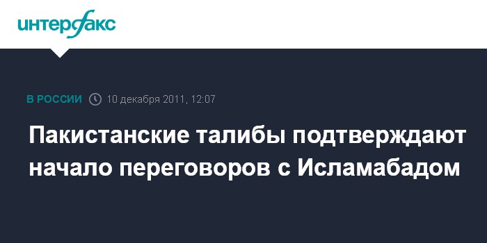 Иерусалим. 10 декабря. INTERFAX.RU - Заместитель командующего пакистанских талибов, которые уже четыре года ведут войну против Исламабада, подтвердил, что они начали переговоры с властями страны, сообщает в субботу израильская газета "Джерузалем пост".