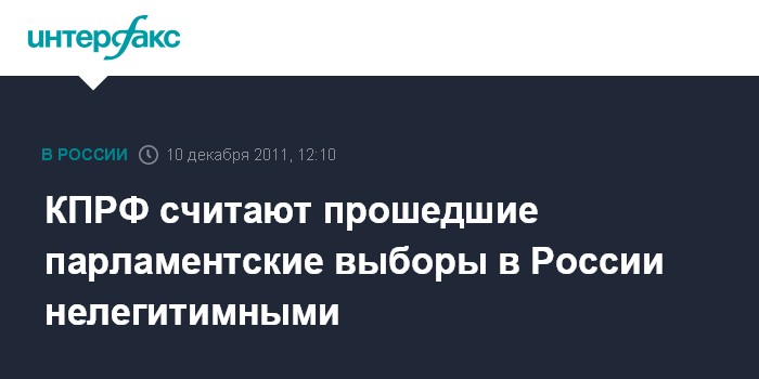 "КПРФ заявляет, что прошедшие выборы в Государственную Думу были нечестными и несвободными. Мы считаем их нелегитимными, как с моральной, так и с политической точек зрения", - говорится в заявлении президиума ЦК КПРФ, текст которого размещен на сайте партии.
