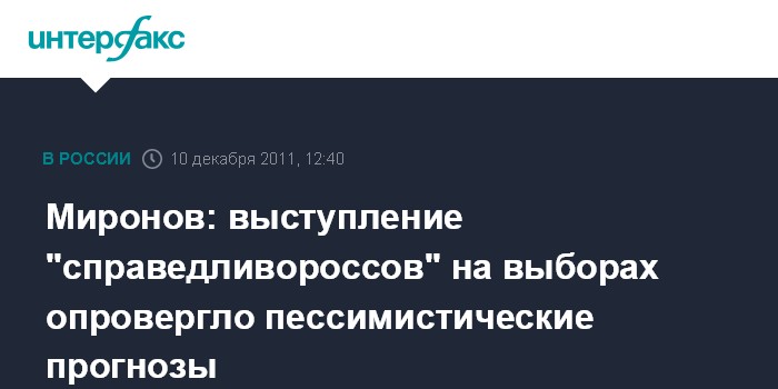 Миронов: выступление "справедливороссов" на выборах опровергло пессимистические прогнозы