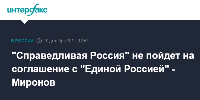 "Справедливая Россия" не пойдет на соглашение с "Единой Россией" - Миронов