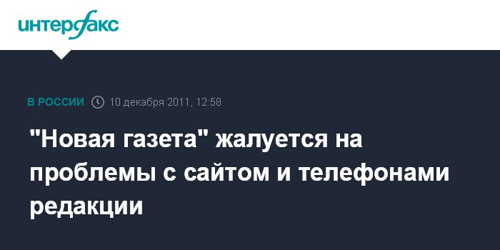 Москва. 10 декабря. INTERFAX.RU - В "Новой газете" заявили, что пытаются выяснить, почему у издания в субботу возникли проблемы с телефонами в редакции и с сайтом в Интернете. "Мы пытаемся выяснить причины, и считаем, что пока что-то предполагать преждевременно. Нам нужно еще полчаса, чтобы все выяснить", - сказал "Интерфаксу" в субботу главный редактор "Новой газеты" Дмитрий Муратов.