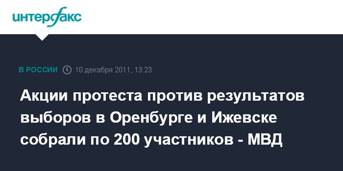 Акции протеста против результатов выборов в Оренбурге и Ижевске собрали по 200 участников - МВД