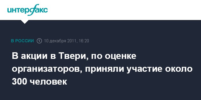 Тверь. 10 декабря. INTERFAX.RU - В акции протеста против фальсификации выборов, которая прошла субботу в Твери возле памятника Михаилу Салтыкову-Щедрину, по оценке организаторов, приняло участие около 300 человек.