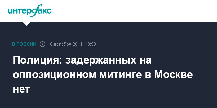 Москва. 10 декабря. INTERFAX.RU - Полиция не задержала ни одного человека по итогам митинга на Болотной площади, сообщили "Интерфаксу" в пресс-службе ГУ МВД России по Москве.