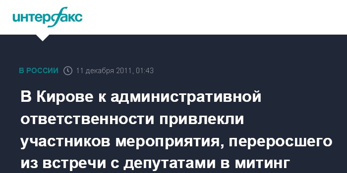Киров. 11 декабря. ИНТЕРФАКС-ПОВОЛЖЬЕ - Полиция составила административные протоколы на организатора и семерых участников мероприятия, переросшего из встречи депутатов с населением в несогласованный митинг.