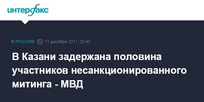 В сообщении поясняется, что митинг, в котором приняли участие около 200 человек (ранее полиция сообщала о 500 участниках - "ИФ"), был незаконным, поскольку никто из казанских активистов не подавал заявку, согласно ФЗ "О собраниях, митингах, демонстрациях, шествиях и пикетированиях".